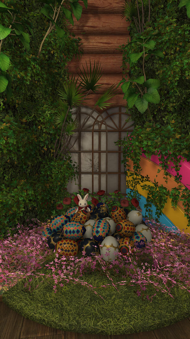 Can you find the 3 hidding rabbits and 6 eggs baskets?